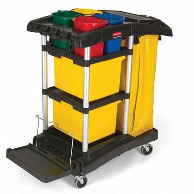 The Rubbermaid Commercial colored disinfectant pail set reduces the possibility of cross contamination by differentiating areas of use. Cleaning pail sets includes 4 different colors: red, green, blue, and yellow. A metal handle makes each cleaning pail easy to transport.
