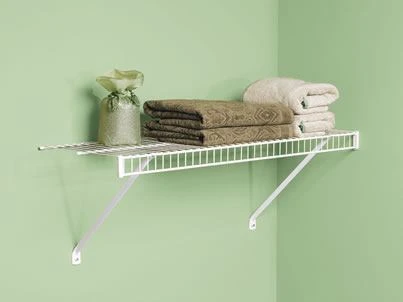 A simple way to add storage where you need it, Linen Shelf Kits feature a ventilated design to promote air circulation keeping items fresh. This design makes this kit perfect for laundry rooms, linen closets or basements. The kit includes support braces and installation hardware.