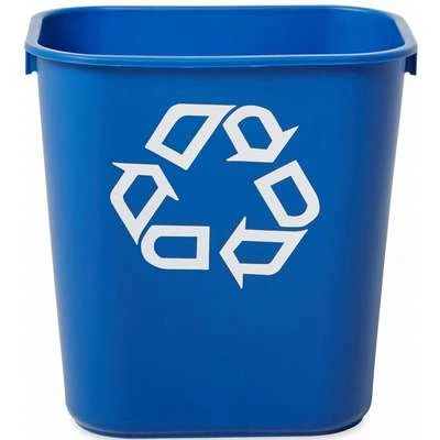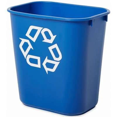 Rectangular plastic recycling wastebaskets fit under standard-height desks and are used to collect recyclables such as paper and plastic. They are typically placed near workstations, in conference rooms, or other locations where recyclable materials are encountered or where floor space is limited. They’re made of plastic to resist dents and corrosion, and they’re lighter than metal so it’s easier to empty them when full.