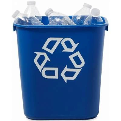 Plastic recycling bins and cans used to collect recyclable materials resist fading, cracking, corrosion, and denting. Plastic recycling bins are generally lighter than metal, making them easier to handle when full. Small-capacity wastebaskets are used to collect recyclables under desks and in areas with limited floor space, while larger cans are used near copy machines, in break rooms, or wherever larger amounts of recyclables are encountered.