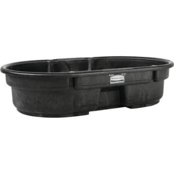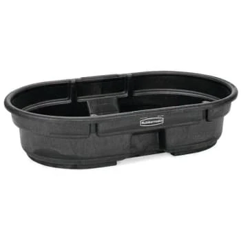 - The Rubbermaid Commercial stock tank is a farm tank constructed from molded polyethylene. Holds liquids and granular materials without leaking. Sleek appearance and smooth black color this Rubbermaid stock tank features an easy to use drain. With seamless construction this structural foam stock tank resists weather and cracking for long use.