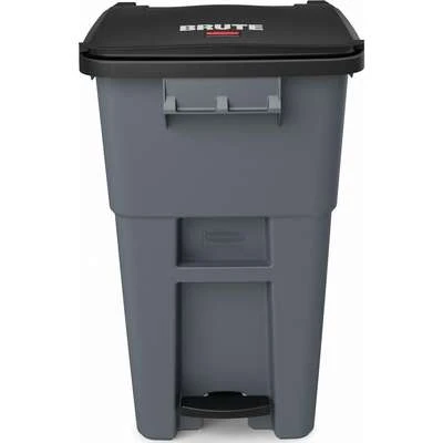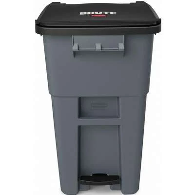 Rollout step trash cans have a foot-activated pedal that opens the lid when pressed, freeing hands for maneuvering waste. Commercial-grade wheels support heavy loads.