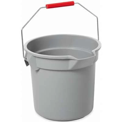 The Rubbermaid Commercial BRUTEยฎ bucket allows you to easily transport liquids. The sturdy handle makes transport simple. Molded-in graduations for accurate measuring.