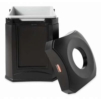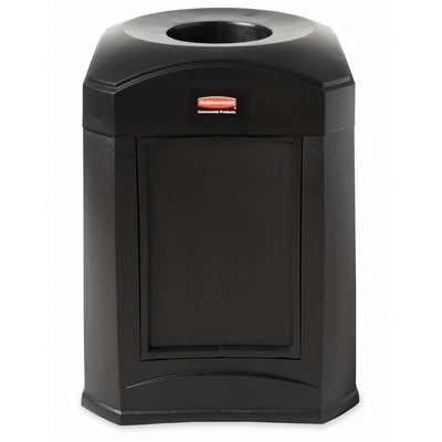 Landmark Series outdoor trash cans from Rubbermaid are used at gas station islands and store fronts to collect trash. They have a recessed panel that can be used with a frame to hold advertising, or can hold a compatible window-washing kit. They are constructed of heavy-duty plastic resin to resist dents, fading, and cracking.