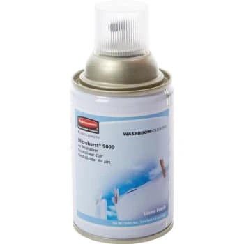 - Rubbermaid Commercial Standard Air Freshener Aerosol Refill for Microburst 9000 fills the room with a refreshing scent. This commercial air freshener refill offers 90 to 180 days of maximum odor control from one refill. The refill actuator distributes the finest dry mist for long-lasting performance. This Rubbermaid air freshener refill contains 63% less VOCs per spray than a standard aerosol. This air freshener refill features a fresh linen scent.