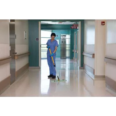 The Rubbermaid Commercial HYGEN™ dry microfiber mop pad is a high-pile and looped floor mop with fringe. Made from 100% microfiber to hold larger dust particles and debris mechanically and electrostatically. Hook-and-loop damp pads attach securely, but easily replace or switch pads. Double-finished edges retain floor mop shape with use over time. Launderable.
