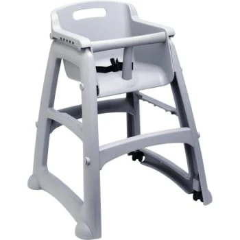 - The Rubbermaid Commercial Sturdy Chair™ youth high chair features a safety harness and 1-piece T-bar for safety. Optional easy-to-use tray removes with one-hand. Attractive, contemporary styling combines with easy cleaning and durability. Microban® antimicrobial protection helps prevent the growth of stain- and odor-causing bacteria. Features handle for easy maneuverability and wheels.