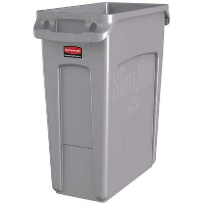Rubbermaid Slim Jim 16 Gal. Rectangular Open Top Utility Trash Can, 25″H, Gray