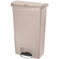 Slim-profile rectangular step trash cans are used to collect waste in tight spaces, such hallways, copy rooms, and break rooms. They can be placed flush against a wall or in a corner so they take less floor space than square or round cans. Hands-free use keeps hands from getting dirty and limits the spread of germs.