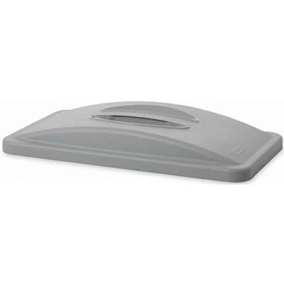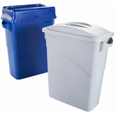 Slim Jim Series trash can lids by Rubbermaid are compatible with 23-gallon Slim Jim trash cans. Lids are used to contain odors, hide trash from sight, and keep pests out of trash.