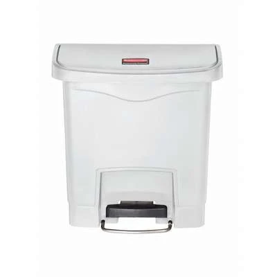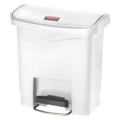 Slim-profile rectangular step trash cans are used to collect waste in tight spaces, such hallways, copy rooms, and break rooms. They can be placed flush against a wall or in a corner so they take less floor space than square or round cans. Hands-free use keeps hands from getting dirty and limits the spread of germs.