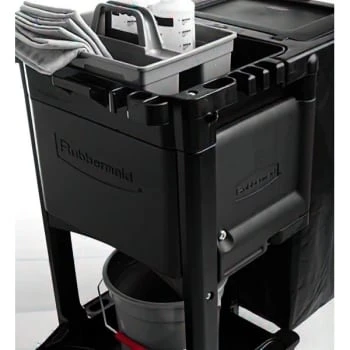 - This Rubbermaid Executive Janitor Cart Features A Discreet And Distinguished Color Scheme That Makes It Great For Cleaning High Profile Areas While Also Providing You With All Of The Features You Need To Easily Organize, Hold And Transport Janitorial Supplies