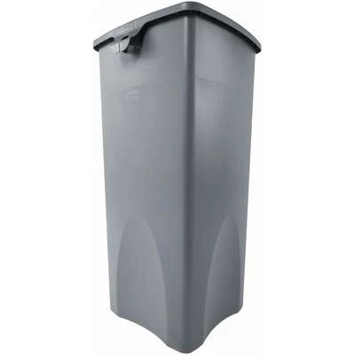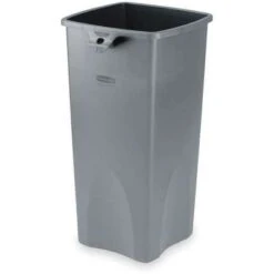Square plastic trash cans hold more trash than round cans with a similar footprint. An open top makes it easier to dispose of trash and provides quick access for changing bag liners.