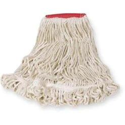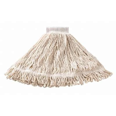 Rubbermaid Commercial Super Stitch® wet mop outperforms and outlasts premium cut-end mops 2 to 1. Balanced blend of cotton and synthetic yarns adds absorbency and strength to this mop. Looped ends and yarn tail band mop for greater floor coverage. Handle sold separately.
