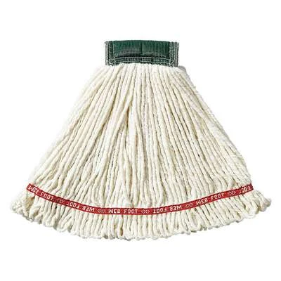 The Rubbermaid Commercial Web Foot® Shrinkless® wet mop is the ultimate, launderable wet mop. Mop head contains a blend of prelaundered, 4-ply cotton and synthetic fibers. Fibers will not shrink or fade with repeated launderings. Antimicrobial fibers woven into the yarn inhibit the growth of bacteria that cause odors and stains. Looped ends and a woven tailband reduce tangling and fraying for better performance and longer product life. 5″ headband for use with clamp-style mop handles (sold separately). Suitable for use in commercial and industrial applications.