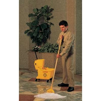 The Rubbermaid Commercial nylon finish mop head has a nonlinting, continuous filament yarn that leaves an even, glossy, long-lasting finish every time. Looped-end yarn construction holds finish, but releases it evenly and efficiently. This mop head with 1″ headband applies finish up to 30% faster than other finish floor mops.