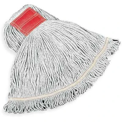 Rubbermaid Commercial Swinger Loop® wet mop is a looped-end, tail banded mop for greater floor coverage. Mop is a 4-ply, balanced blend of cotton and synthetic yarn for absorbency and strength. For use with clamp style mop handles (sold separately). Launderable.
