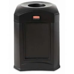 Rubbermaid Landmark Series 35 Gal. Square Funnel Top Decorative Trash Can, 31″H, Black