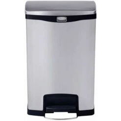 Rubbermaid SILHOUETTE 40 Gal. Square Open Top Decorative Fire-Resistant Trash Can, 31-1/2″H, Silver